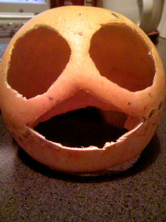 ハロウィン用のおもちゃカボチャが売っていたのでアヒルランタンを作ってみようとして挫折したの図。