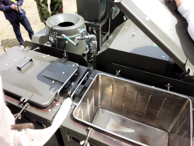 (↑燃料と熱源は灯油&発電機、水は浄水車とつないで供給)
