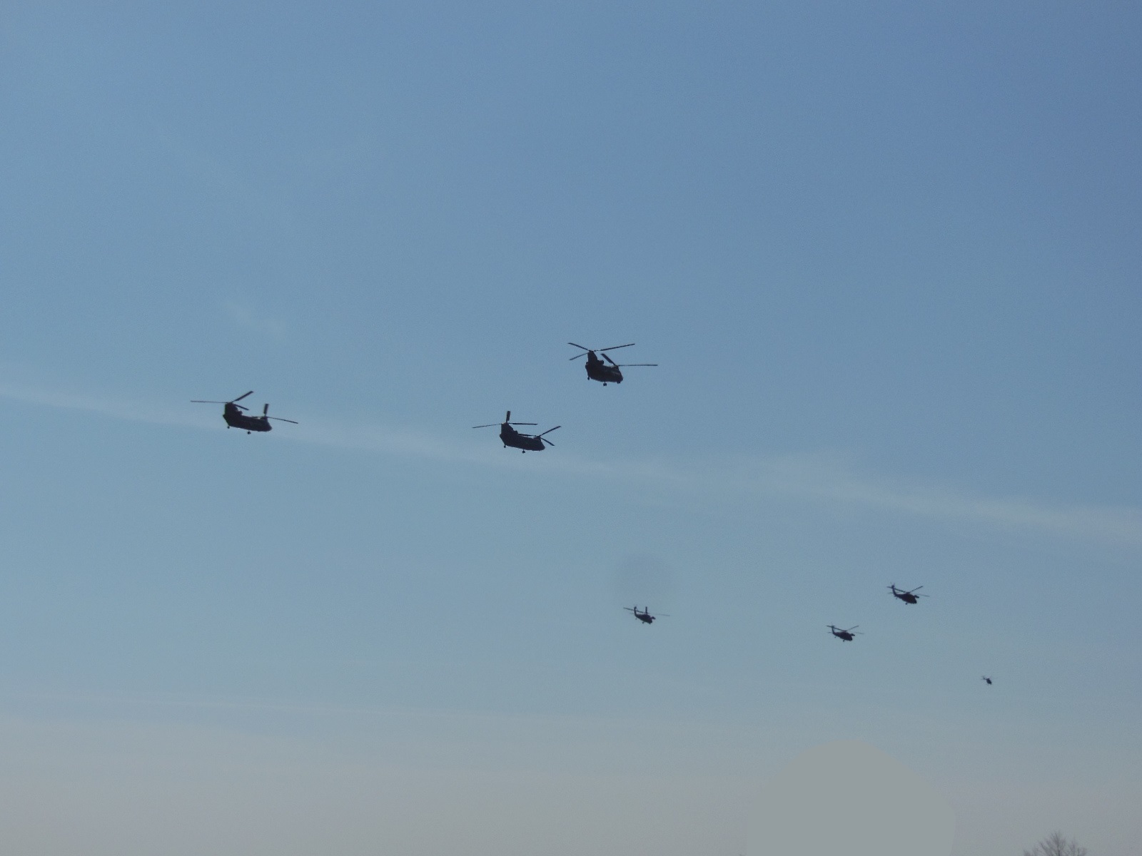 ↑ヘリの編隊飛行(チヌーク・ブラックホーク・オスカー)