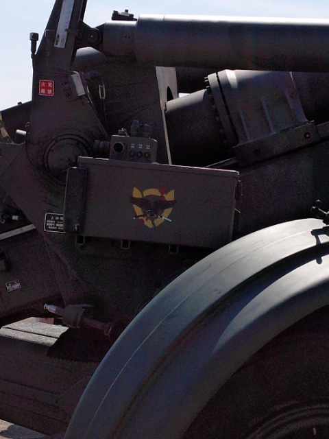 ↑全景を入れるのが難しい155mm榴弾砲FH70。日本刀を鷲掴みにした鷲の部隊マークは近くで見ると結構めっそりでした。ステンシルペイント?