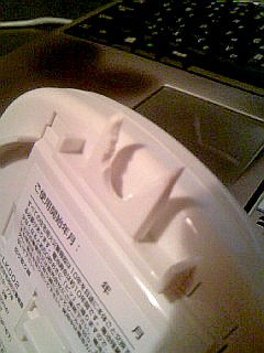 留め付けていたネジが締めすぎだったのと、この夏の暑さでネジ周辺のプラスチックの出っ張りが劣化したせいだと思いますが、なんかこう引き千切ったようなささくれ状になってるのが曰くあり気でなんとも。